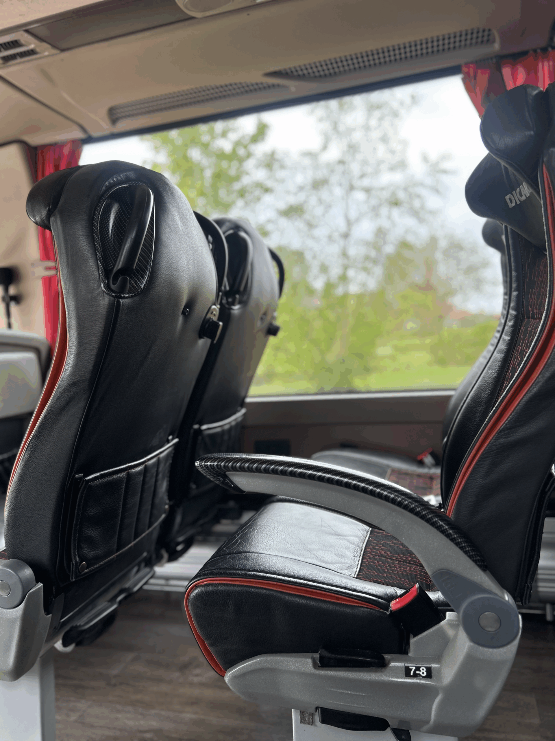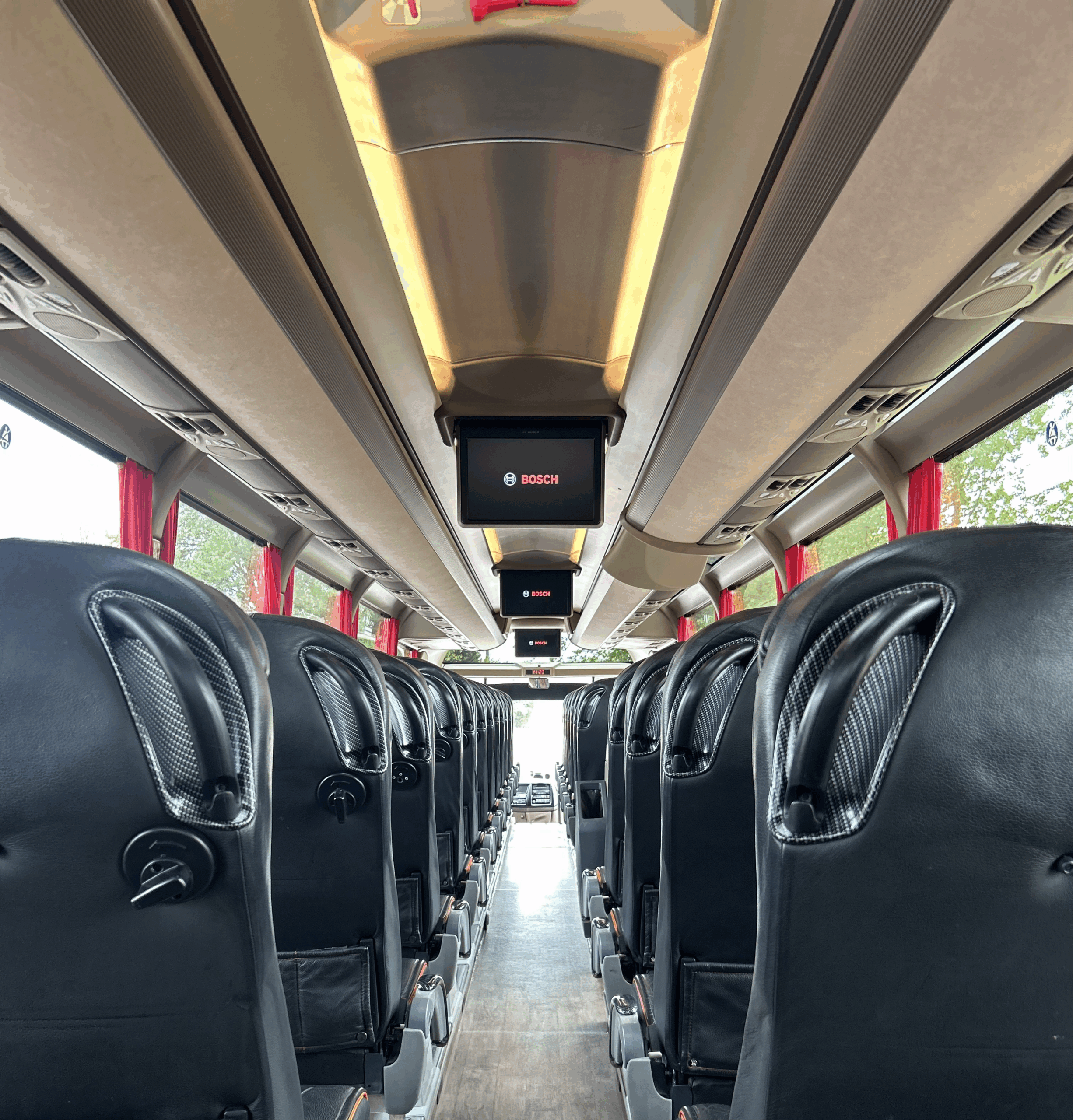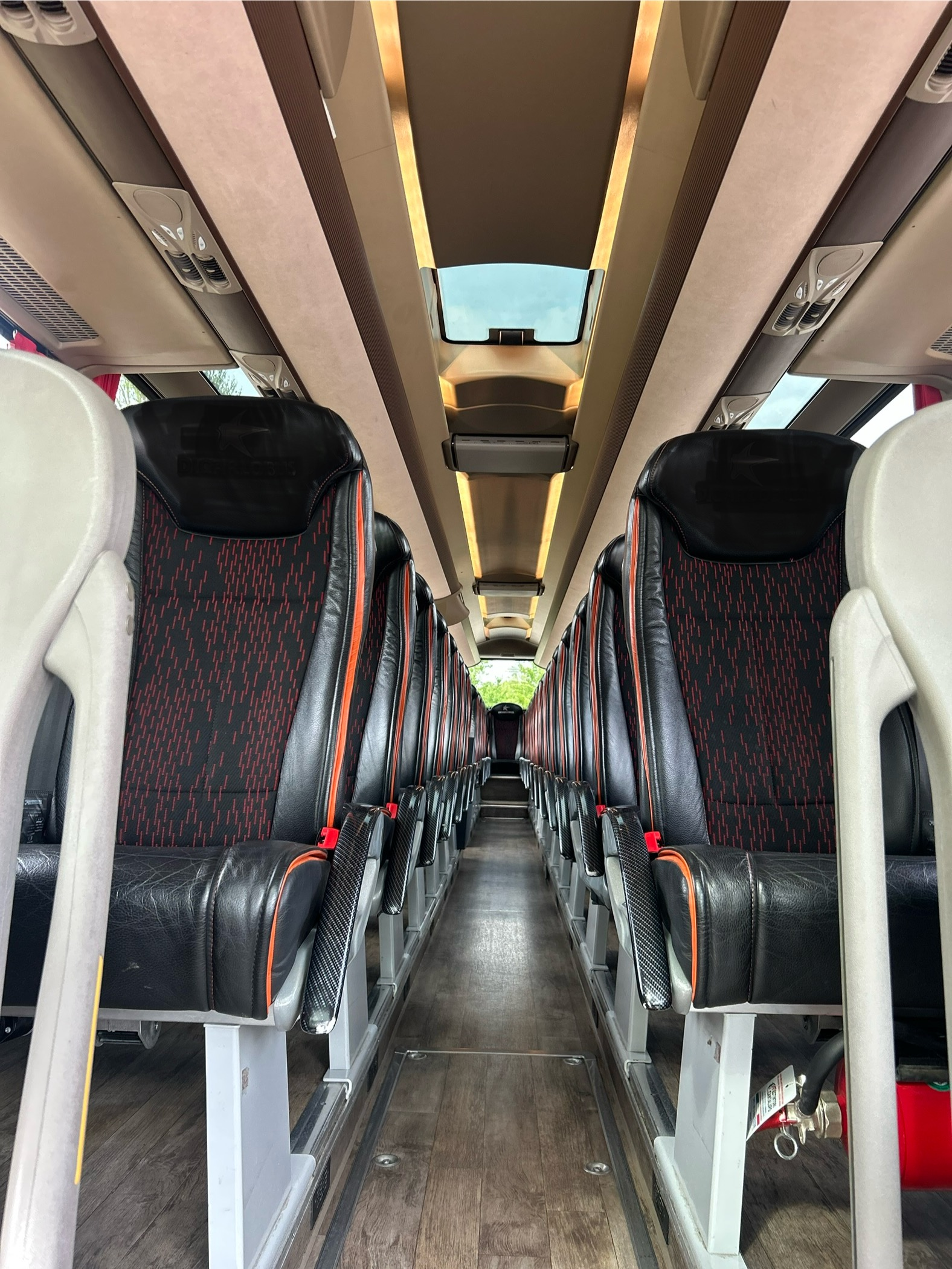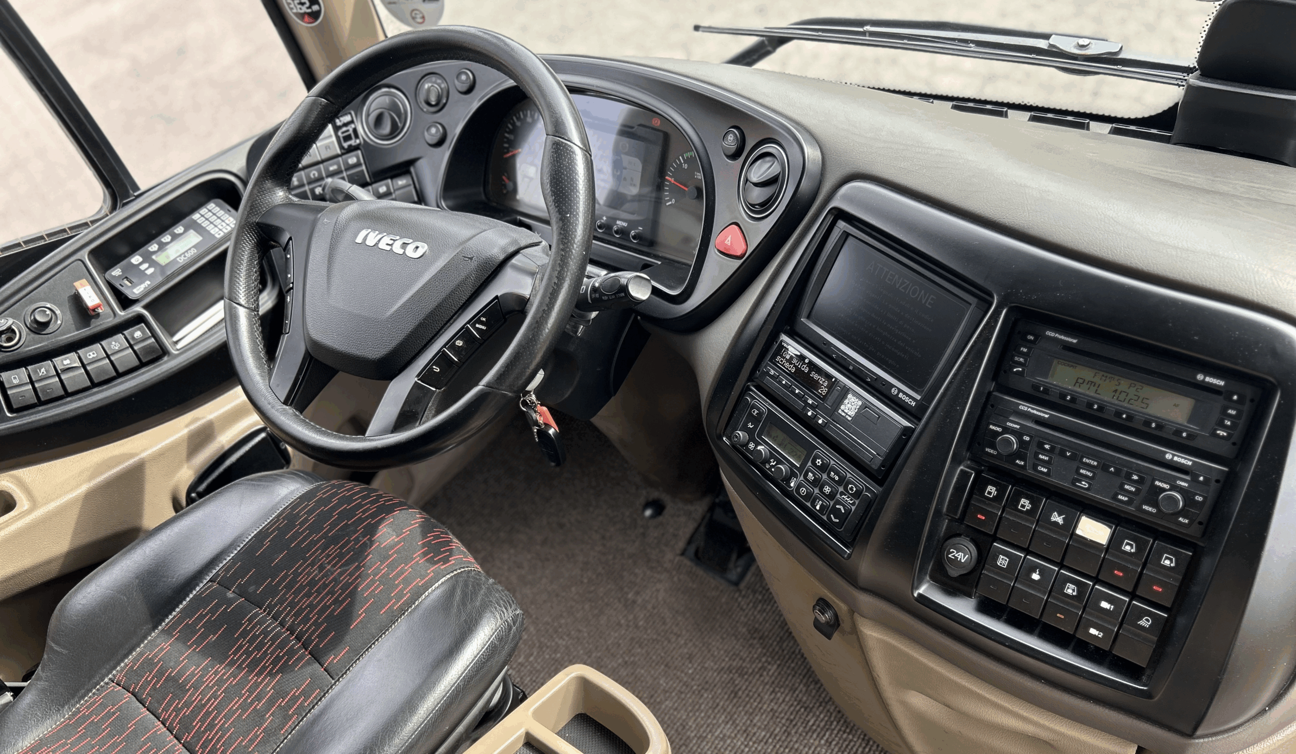 L’Iveco Magelys da 13 metri è un coach turistico di fascia alta con 55 comodi posti passeggeri più accompagnatore. Progettato per garantire il massimo comfort, offre sedili in pelle-tessuto maggiorati, reclinabili e dotati di ampio spazio per le gambe, cinture di sicurezza e portariviste integrati. L’ambiente, estremamente luminoso, è valorizzato dalle cappelliere centrali e dalle ampie finestrature anche sul tetto, per una vista panoramica unica.
