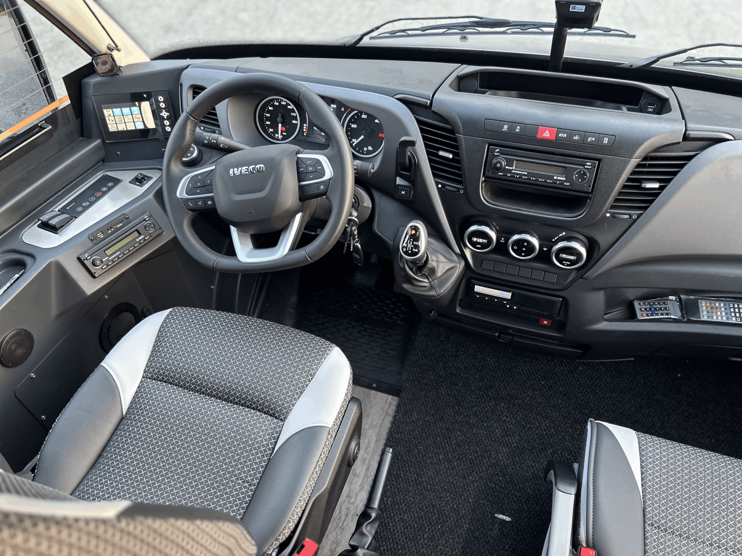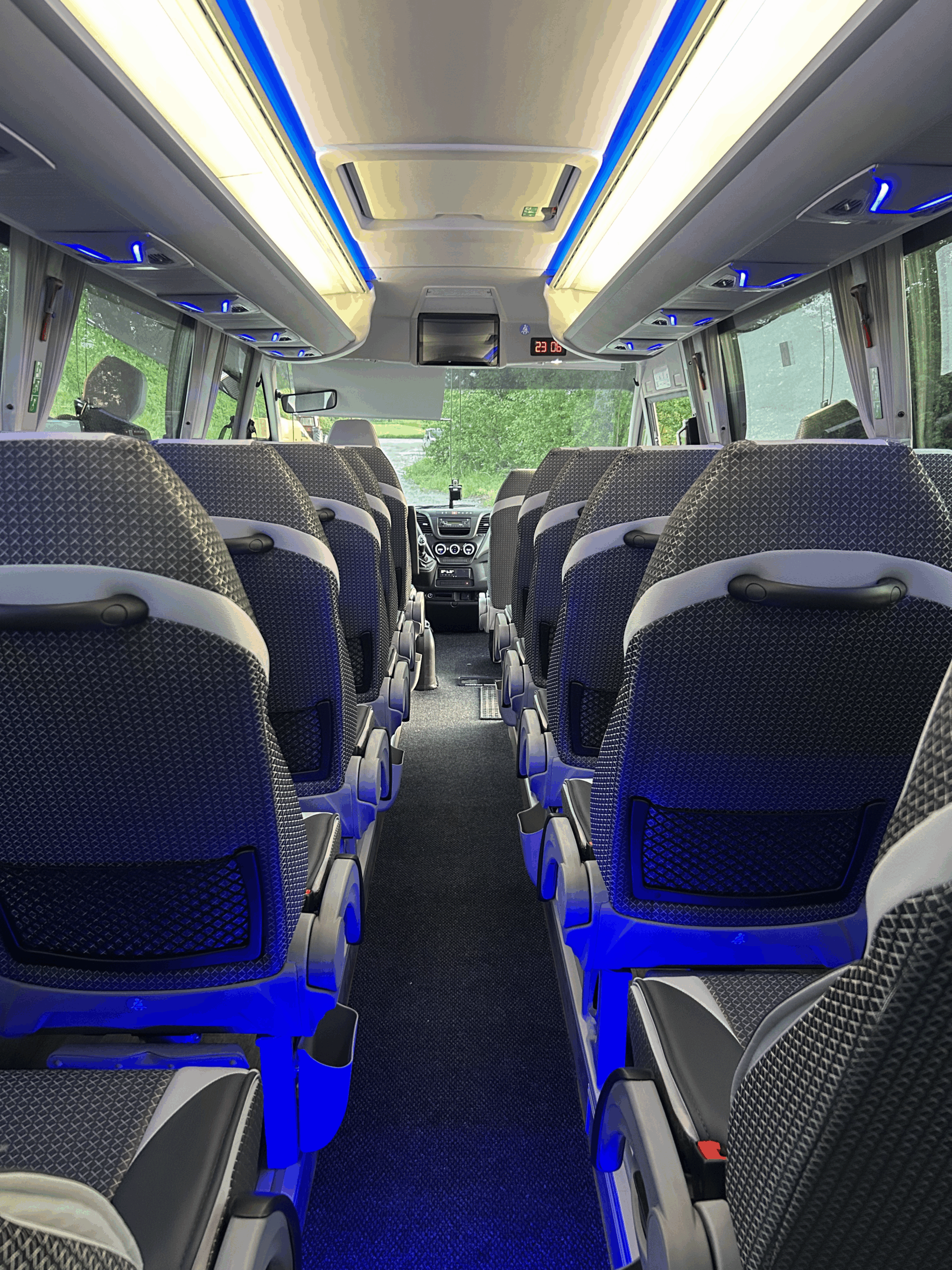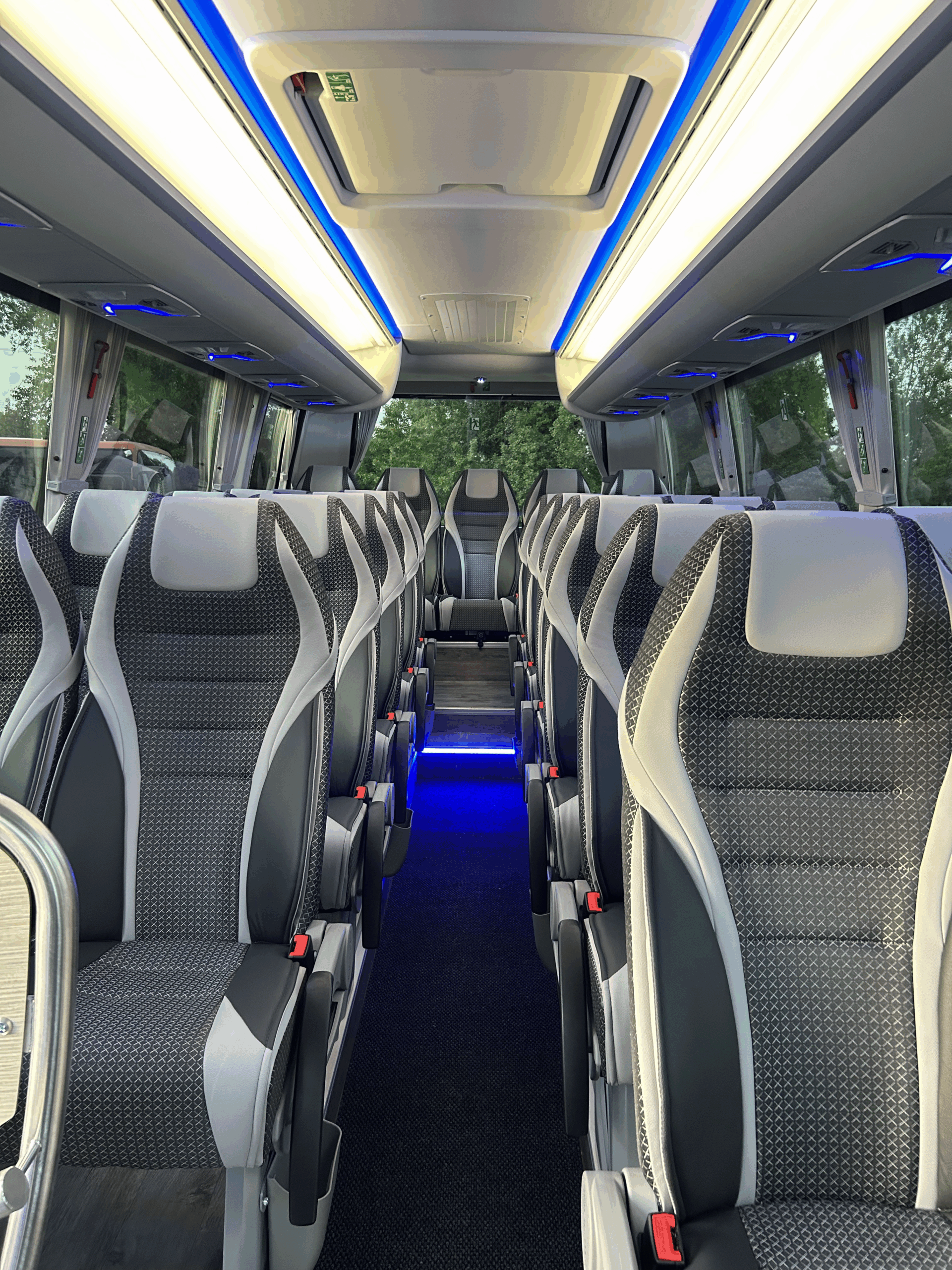 L’Iveco Wing è un minibus compatto e moderno con 27 posti passeggeri più accompagnatore, pensato per garantire comfort e sicurezza in ogni viaggio. I sedili Confort, ampi e reclinabili, offrono spazio per le gambe e sono tutti dotati di cintura di sicurezza. Ogni postazione è equipaggiata con presa USB per la ricarica dei dispositivi personali e luce di lettura individuale, per viaggiare in comodità anche di notte.